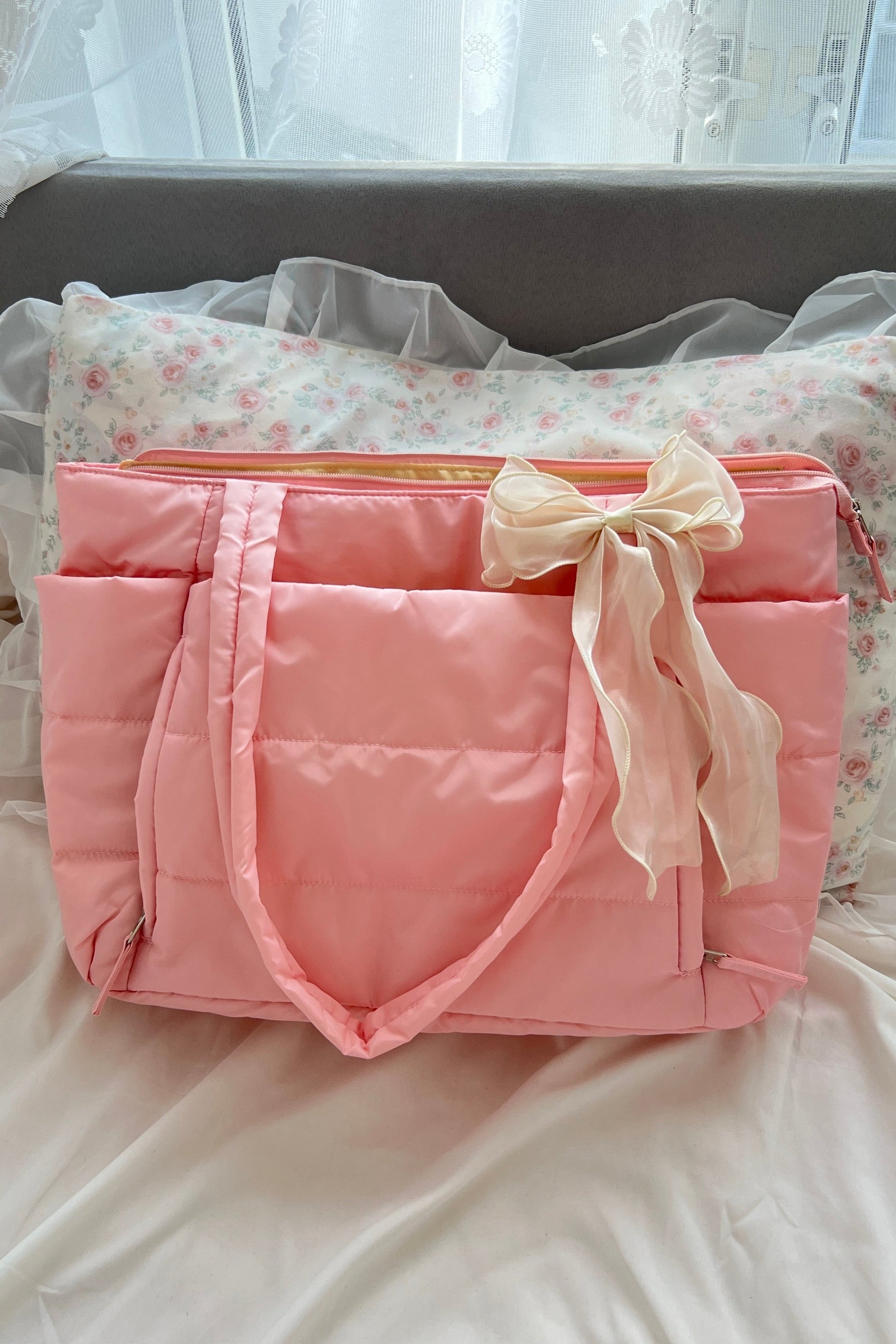 A puffy everyday tote with 15+ pockets, a built-in Stanley cup holder, and a free matching pouch — made to keep everything in place.